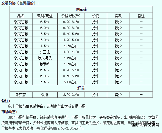由于大蒜市場受多種因素影響,價格會隨時間波動,因此請定期訪問信息來源更新價格行情信息,并關注市場動態(tài),及時調整策略。