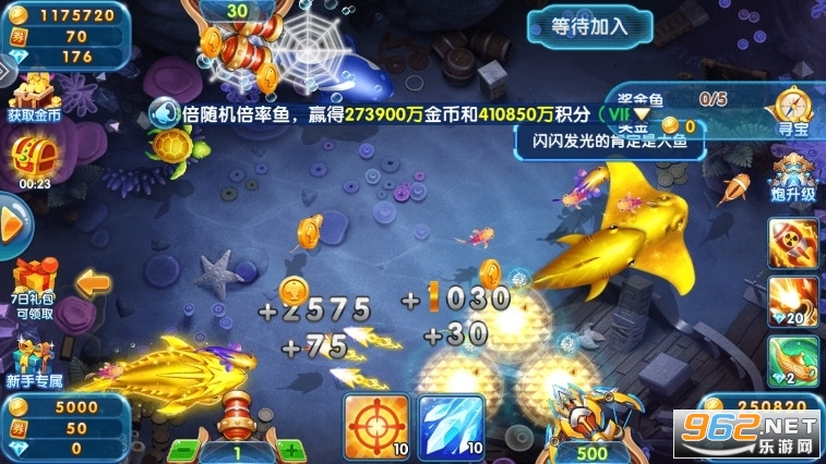 1、升級炮臺:提高捕魚效率和成功率。